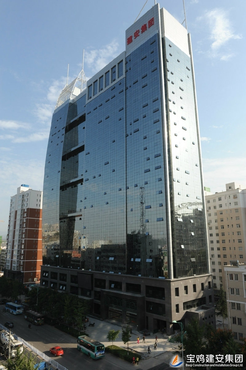 Jian’an building is located in the west section of Gongyuan Road, Weibin District, Baoji City. With the building area of 49937, it is the frame shear wall structure with one floor underground and two in partial positions as well as 24 floors above ground. The building has a total length of 84.85m, and the total building width of 39.30m, and the total building height of 97.20m. Jian’an Building is the high intelligence modern office complex integrated with multiple functions of office buildings, restaurants, business hotels, sports venues, lecture hall and automatic stereo garage etc. The project was awarded the "Chang’an Cup" award of Shaanxi Province and the provincial civilized construction site.