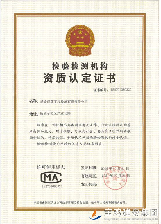 楊凌建翔工程檢測(cè)有限責(zé)任有限公司,由陜西省楊凌示范區(qū)規(guī)劃建設(shè)局批準(zhǔn),于2012年12月在陜西省楊凌示范區(qū)工商行政管理局注冊(cè)成立的股份制企業(yè),具有獨(dú)立法人資格的檢測(cè)機(jī)構(gòu)。并于2015年1月通過(guò)陜西省質(zhì)量技術(shù)監(jiān)督局的認(rèn)評(píng)取得計(jì)量認(rèn)證證書。本公司主要從事工業(yè)與民用建筑工程各項(xiàng)試驗(yàn)檢測(cè)業(yè)務(wù)。