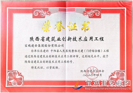 本工程2019年被評(píng)為“陜西省優(yōu)質(zhì)結(jié)構(gòu)工程”、“ 陜西省省級(jí)文明工地”。