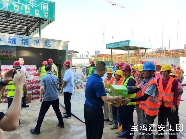 7月18日上午,寶雞高新區(qū)管委會(huì)黨工委委員、管委會(huì)副主任楊海翔,高新區(qū)總工會(huì)主席李廣強(qiáng),區(qū)教育系統(tǒng)黨委書記、教育體育局局長(zhǎng)唐宏,副局長(zhǎng)劉輝等一行領(lǐng)導(dǎo),前往建安集團(tuán)承建的寶雞高新第三幼兒園建設(shè)項(xiàng)目工地,走訪慰問一線員工,開展“夏送清涼”活動(dòng)。