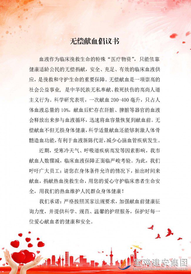 無償獻(xiàn)血倡議書