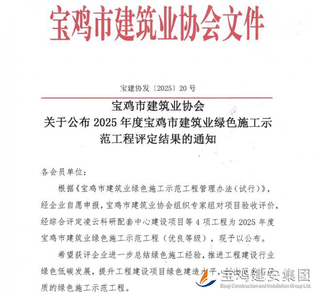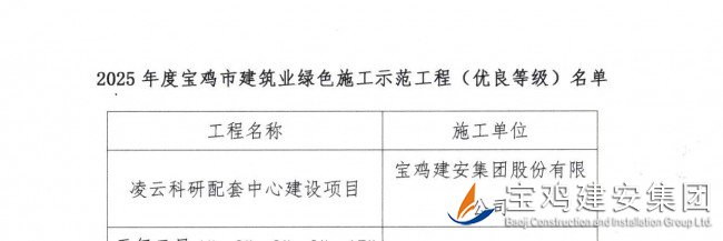 公司承建的凌云科研配套中心建設(shè)項(xiàng)目榮膺“2025 年度寶雞市建筑業(yè)綠色施工示范工程”稱號