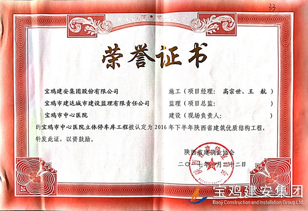 寶雞市中心醫(yī)院立體停車庫(kù) 省優(yōu)質(zhì)結(jié)構(gòu)工程